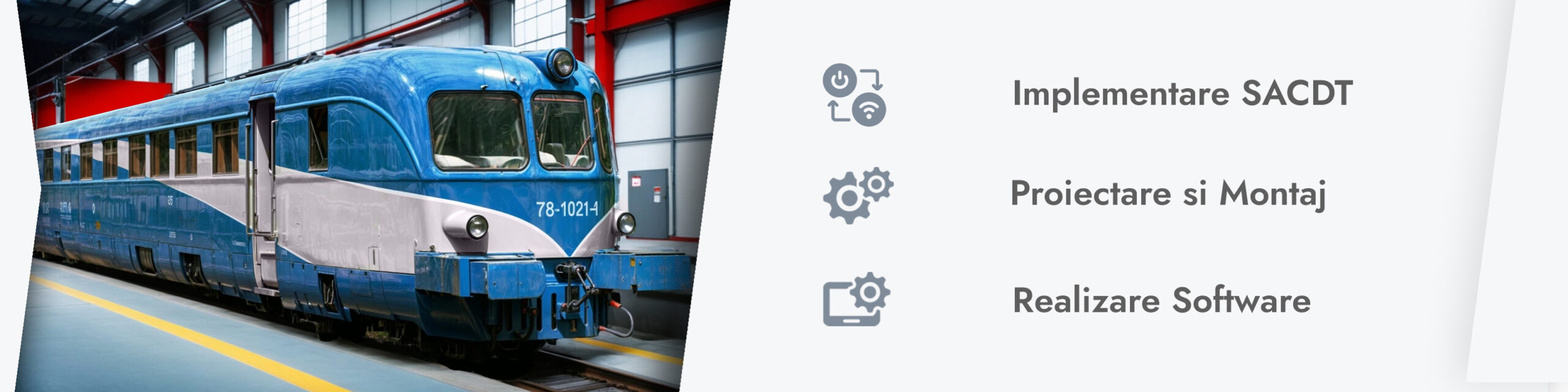 - Proiectare, executie si montaj pentru: instalatia electrica a automotorului; tablou electric cu sistem automat de comanda multipla si diagnoza; pupitru de comanda; grup de incalzire salon calatori; aeroterma de incalzire pentru postul de conducere; instalatie electrica de mentinere calda a motorului Diesel; sursa de incarcare baterii de acumulatori (varianta mobila); sistem de racire a apei din circuitul motorului Diesel; sistem de racire a aerului (intercooler).