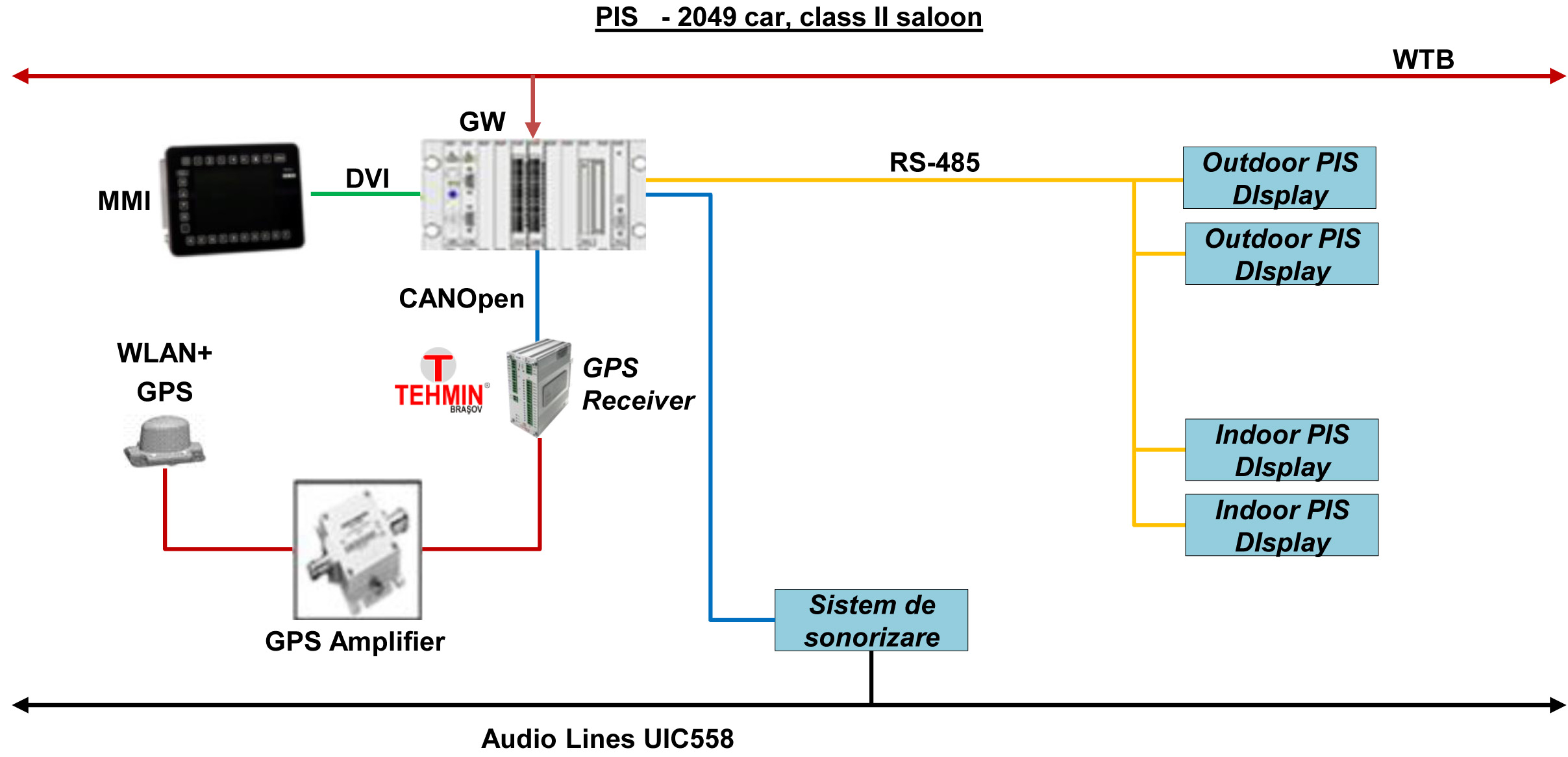 Sistemul implementeaza o retea de automatizare in vagon, compusa dintr-o serie de automate programabile interconectate prin transmisie seriala (protocol CANopen), realizandu-se astfel un bus de vehicul.